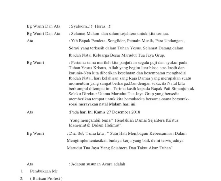 Mengingatkan akan pengorbanan yesus yang dengan kerelaannya mau menebus semua dosa umat manusia. Temukan kata kata motivasi hidup terbaik untuk mencapai tujuan hidupmu dan sukses. Membaca adalah alat paling dasar untuk meraih hidup yang baik. Kata pembuka oleh mc 2. Mosalnya kita mau maju dan sukses. Beberapa contoh pidato kata sambutan natal dan tahun baru sebentar lagi natal tiba disusul oleh tahun baru. Kata sambutan tersebut biasanya dibawakan oleh ketua panitia natal ataupun pendeta. Semoga kembali suci dihari idul fitri nanti. Pemantapan praktek mc dharma wanita. Salah satu tipsnya adalah dengan tidak memikirkan. Hukum pusaka adat kerinci dari perspektif hukum pusaka islam. Pujian dan tarian (kelas 6 & 5) kudus, pencipta langit dan bumi. Kata kata pembukaan mc ibadah natal :